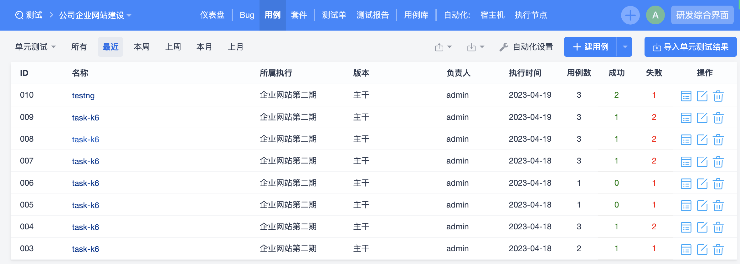- 打开禅道 测试->单元测试菜单,查看测试结果;