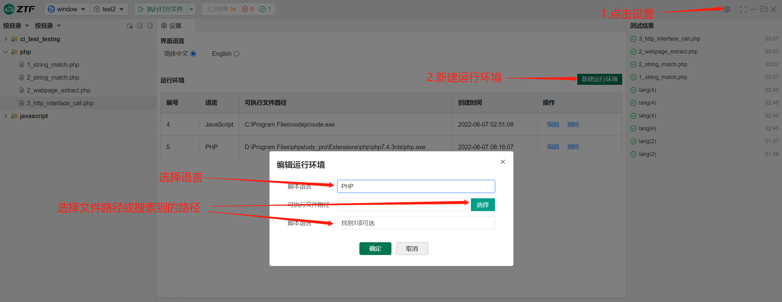 - 选择脚本语言