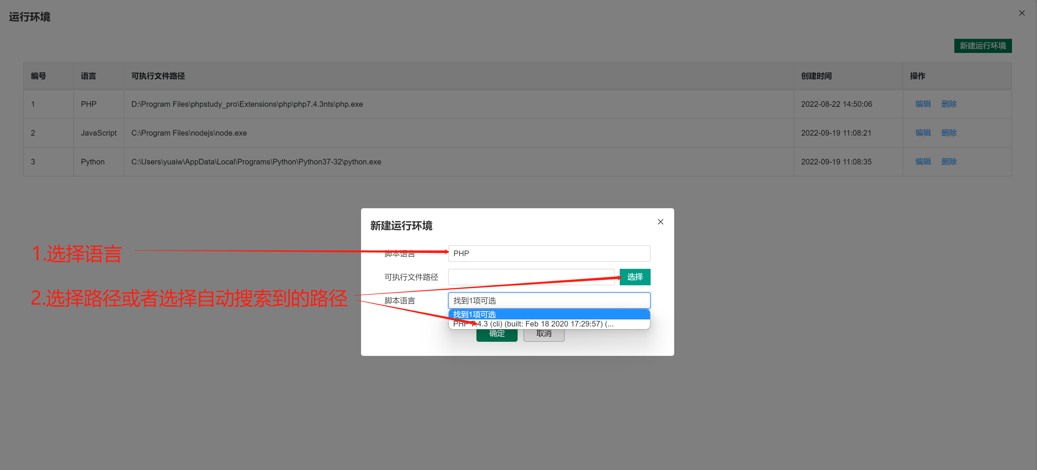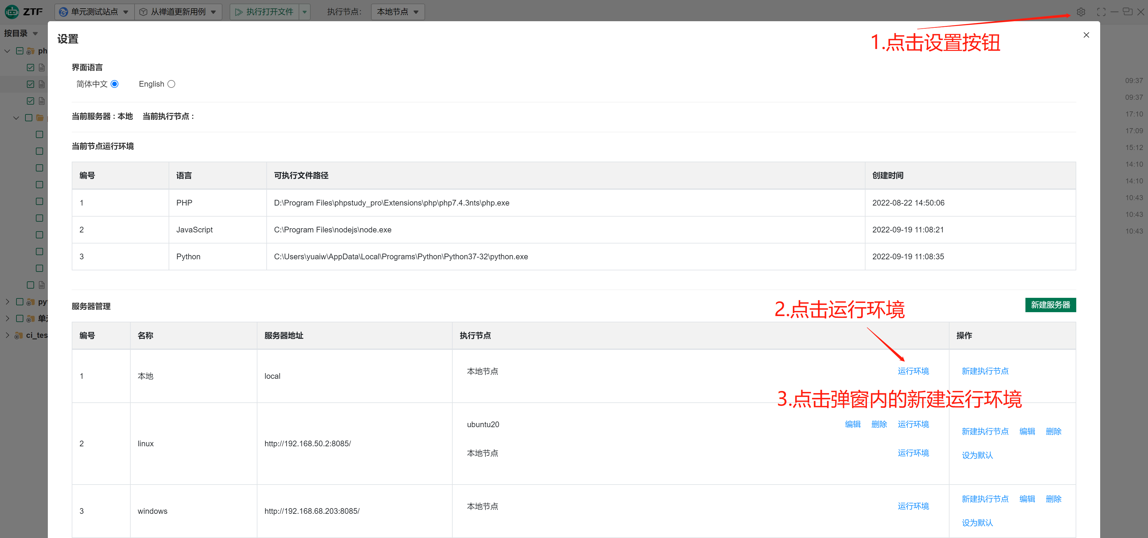 - 选择当前的服务器(默认为本地)对应的执行节点(默认为本地),点击运行环境