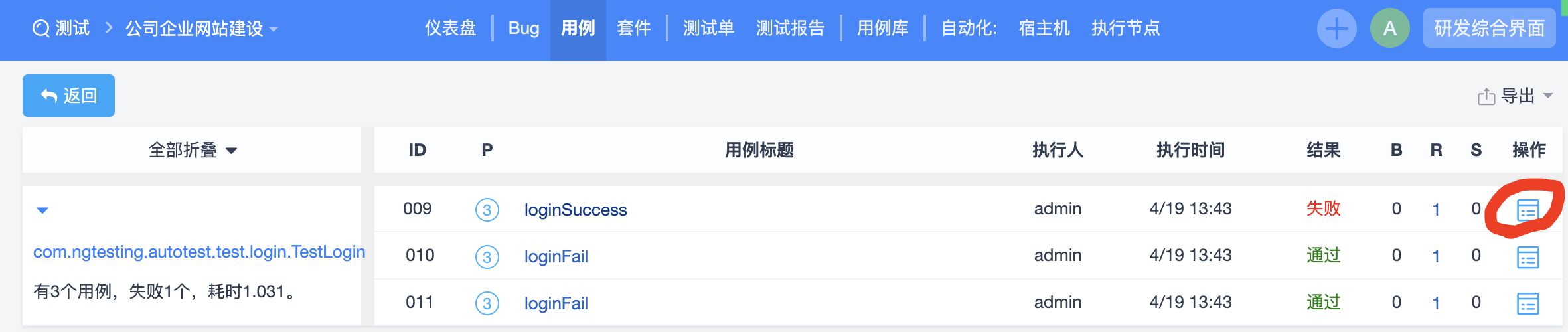 - 点击图2详情页面中的用例列表操作列的按钮,可查看用例执行结果。