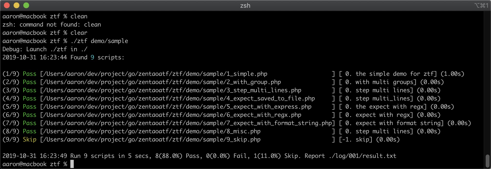 经过两个多月多的讨论、争吵、开发,我们彻底重构了ZENTAOATF。这次重构主要集中在开发语言、用例脚本的组织和禅道的集成上。我们使用GO语言重构了ATF框架,真正做到了平台无依赖、部署无依赖,只需要一个可执行文件就可以运行。同时我们也重新定义了测试脚本的组织语法,可以在一个脚本中支持多用例,可以极大简化自动化测试脚本的维护成本。我们还和禅道做了深度集成,可以将禅道里面的用例和自动化测试脚本一一绑定,执行的结果可以提交到禅道中作为测试结果。执行失败的脚本也可以自动创建bug。